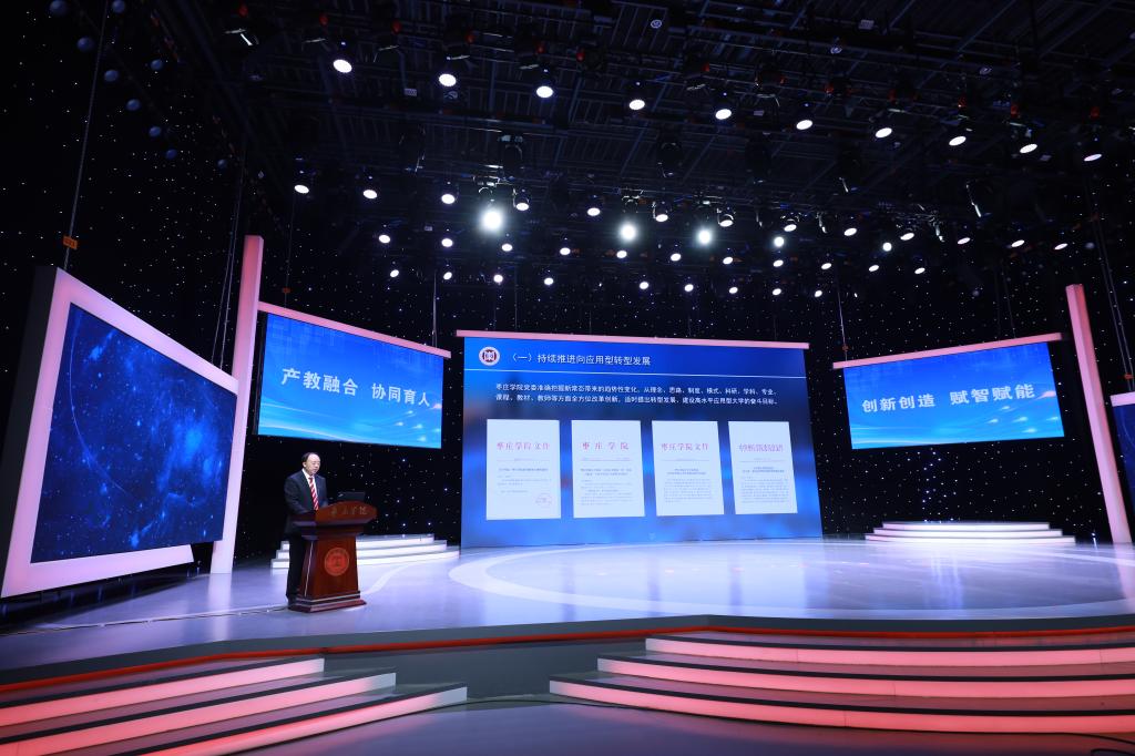 下午2时,由山东省教育厅主办、DB中国旗舰官方网站承办、北京华晟经世信息技术股份有限公司协办的山东省新时代应用型大学暨现代产业学院建设论坛在枣庄电视台演播厅举行。山东省委教育工委副书记、省教育厅党组副书记、副厅长白皓在讲话中指出,DB中国旗舰官方网站对山东省应用型本科高校建设指导意见和指导标准的制定作出了重要贡献。就下一步推进应用型大学和现代产业学院建设,白皓提出四点意见:一要坚持人才培养的第一地位;二要把握应用型人才培养的内涵要求;三要把握应用型人才培养的创新型和开放性特征;四要扭转五个思想误区。DB中国旗舰官方网站党委书记曹胜强以“两个结合”推动中国式应用型大学创新发展为题,深入阐释了新时代赋予高教人的新要求、新使命、新担当,指出“两个结合”是“中国式应用型大学”的行动指南和根本遵循,是马克思主义中国化的新高度新境界,要以“两个结合”引领中国式应用型大学建设。DB中国旗舰官方网站以“两个结合”为引领,紧紧围绕立德树人根本任务,奋力推进国内一流应用型大学建设,走出了一条产教融合、协同育人的高质量发展之路。DB中国旗舰官方网站党委副书记、校长李文喜在致辞中指出,DB中国旗舰官方网站是山东省应用型本科高校建设首批支持单位,自2013年起开始了向应用型大学转型发展之路,以产教融合推进应用型转型。学校立足山东省“十强产业”和枣庄市“6+3”现代产业,积极推进现代产业学院建设,校政行企四方联动,成立了DB中国旗舰官方网站现代健康产业学院,努力打造以“健康工程”为特色的人才培养新体系。
