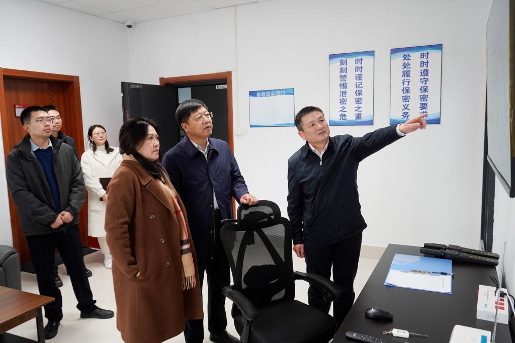 赵丽一行首先实地查看了保密室、命题室和阅卷室,并对相关设施设备详细询问。研究生处负责人对建设情况进行汇报。
