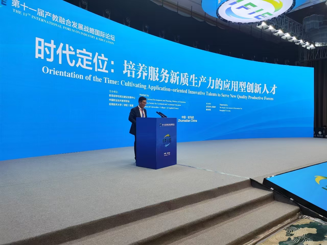 12月9日-10日,由教育部学校规划建设发展中心、中国职业技术教育学会、应用技术大学(学院)联盟主办,驻马店市人民政府、黄淮学院承办的第十一届产教融合发展战略国际论坛在黄淮学院召开。中国职业技术教育学会会长、教育部原副部长鲁昕,教育部学校规划建设发展中心主任孙明春等报告嘉宾出席开幕式。校党委委员、副校长安涛应邀出席会议并作了题为《班墨文化引领应用型创新人才培养》的报告。教务处处长张立华参加会议。