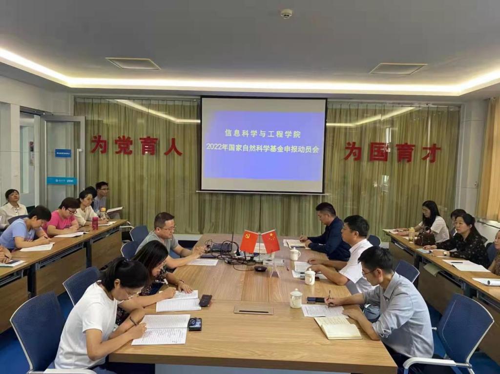 10月6日下午,信息科学与工程学院2022年国家基金申报动员会在墨子楼二楼中兴会议室召开。副校长李目海出席会议并作动员讲话,学院党政领导、全体专任教师参加会议,会议由院党总支副书记查明主持。