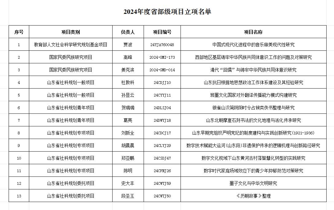 近日,山东省哲学社会科学工作办公室公布了2024年度山东省社会科学规划专项项目立项名单,我校4项科研项目获批立项。
