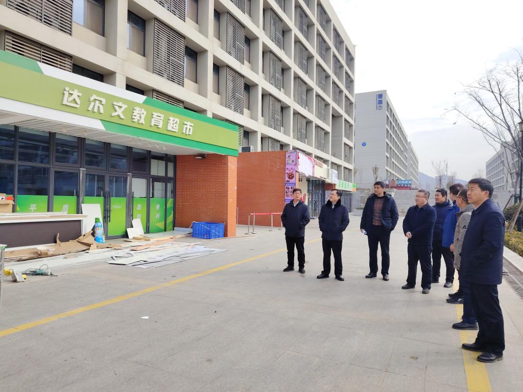 为做好春季开学准备工作,全面排查校园各类安全隐患,2月14日上午,校党委副书记丰雷带队检查开学准备工作,办公室、学生工作处、后勤服务处、资产与实验管理处、保卫处等相关部门负责人陪同检查。