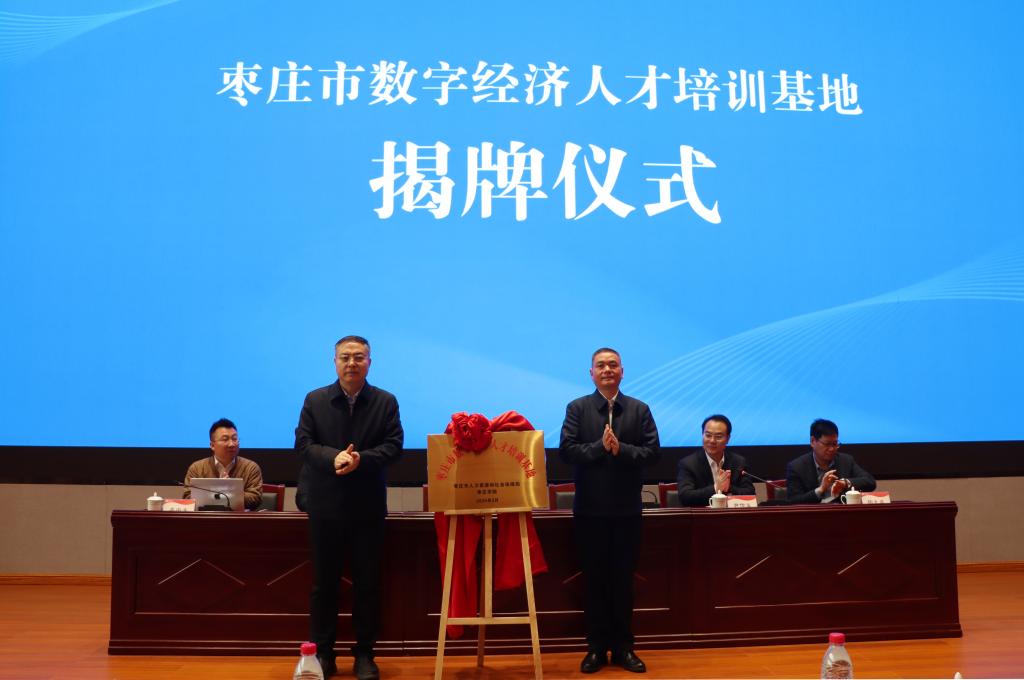 高峰、左文共同为“枣庄市数字经济人才培训基地”揭牌。