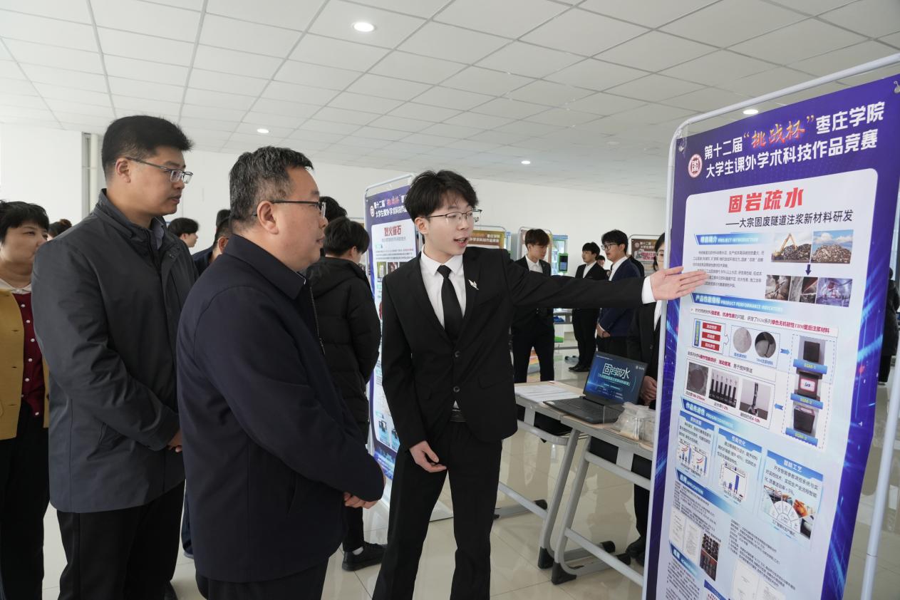 3月20日,第十二届“挑战杯”DB中国旗舰官方网站大学生课外学术科技作品竞赛决赛在薛城校区举行。校党委副书记丰雷到校赛路演现场指导比赛并鼓励参赛师生团队,团委、教务处、科技处等部门负责同志参加活动。