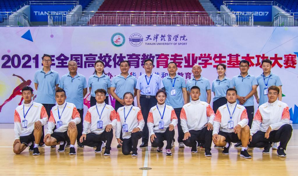 7月17日—24日,由教育部主办,天津体育学院、全国高等学校体育教学指导委员会承办,天津市教委、高等教育出版社协办的2021年全国高校体育教育专业学生基本功大赛在天津体育学院举行。来自全国24所高校的192名体育教育专业本科生参加此次比赛。