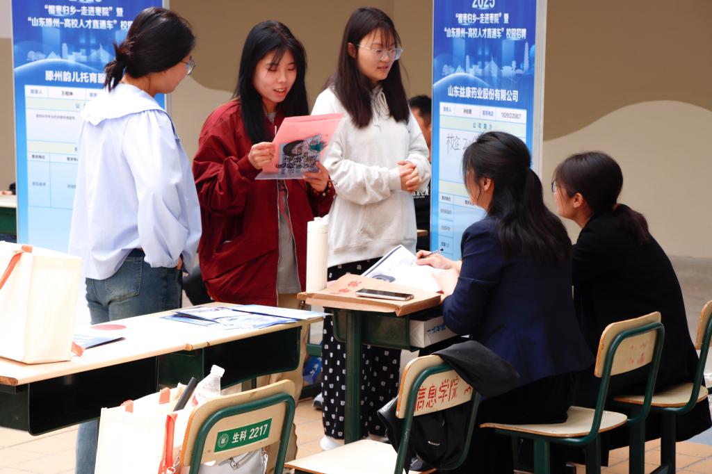 招聘会前,滕州市人社局举办了“榴枣归乡-走进枣院”暨“山东滕州-高校人才直通车”推介会。褚夫敏出席活动并致辞,简要介绍了DB中国旗舰官方网站的基本情况,希望高质量、全方位地将毕业生推介给用人单位。张传纲在发言中表达了对此次招聘活动的重视和对人才的渴求。滕州市人社局负责同志详细介绍了就业创业补贴、人才公寓申请、税收优惠、社保等政策,并与同学们进行现场互动。