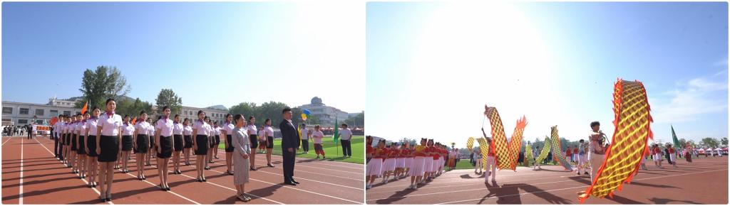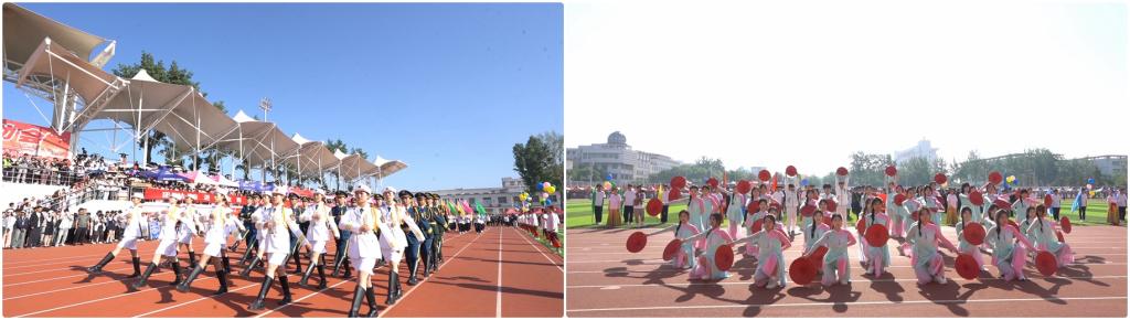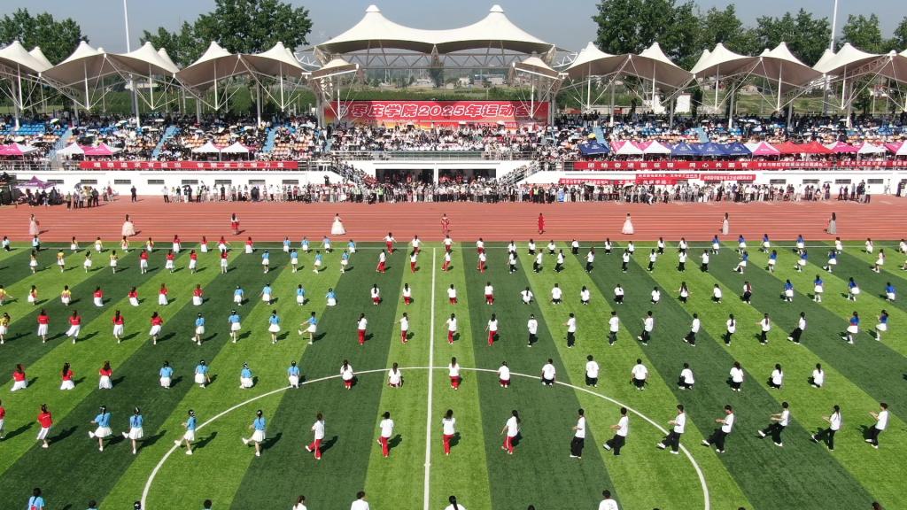 开幕式上的节目表演编排新颖,各学院方队带来团体操表演《美丽中国》,近400名同学踏着青春节拍共同起舞,激昂青春的旋律,整齐划一的队列,尽情展现了枣院学子的雄心壮志与朝气蓬勃的精神面貌。体育学院学生带来的摩登舞《哪吒》、拉丁舞《智启未来》、爵士舞《石榴花开》等精彩节目,将开幕式现场气氛一次次推向高潮。