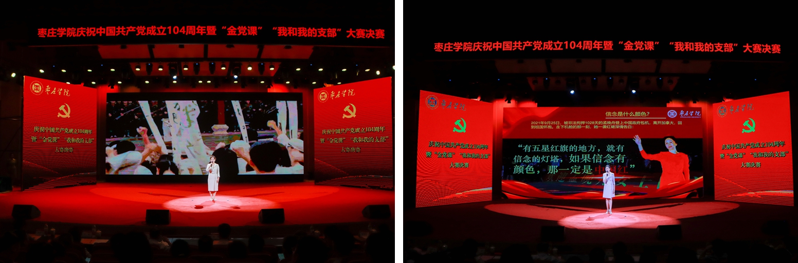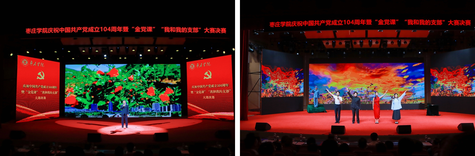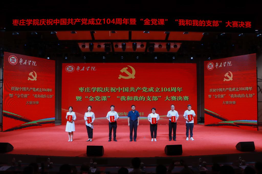 为庆祝中国共产党成立104周年,展示学校党建工作成果,6月30日,我校在青年音乐厅举办庆祝中国共产党成立104周年暨“金党课”“我和我的支部”大赛决赛。校党委书记高峰,党委副书记丰雷,党委委员、副校长李目海、安涛,党委委员、组织部部长袁俊现出席活动。全校各级党组织书记、处科级党员干部及各单位党员代表参加活动。枣庄市委组织部、市委讲师团及学校相关单位负责人受邀担任评委。