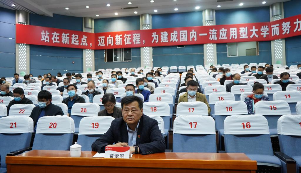 4月29日下午,我校在综合楼报告厅举行副处级和科级干部党史学习教育专题学习班结业仪式。省党史学习教育第四巡回指导组成员苗素军同志莅临指导,校领导曹胜强、曾宪明、孙正、张昌林出席活动,全校副处级和科级干部参加活动。结业仪式由校党委副书记曾宪明主持。