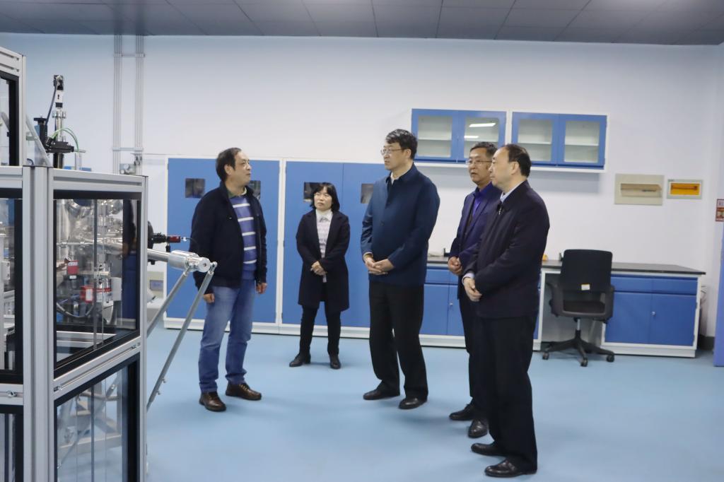 随后,在校领导曹胜强、李文喜陪同下,陈国前一行首先来到先进光电技术研究院参观。光电工程学院院长梁兰菊从科研团队的组成、研究方向,学科建设、联合培养博士研究生、省级平台以及设备等方面介绍了先进光电技术研究院的基本情况。在参观完山东省低维量子材料工程技术研究中心和山东省微纳技术院士工作站后,陈国前对我校实验室建设以及所取得的科研成果给予高度评价。