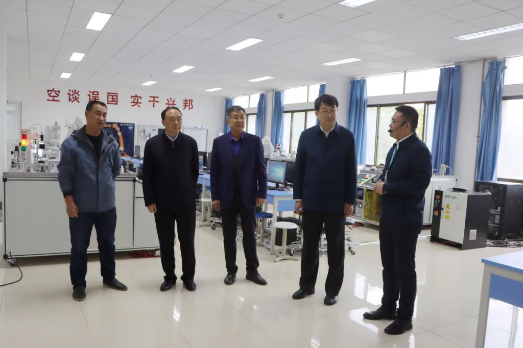 在“互联网+中国制造2025产教融合创新基地”,陈国前一行参观了PLC工业数据控制及采集实验室、ABB工业机器人基础实验室、机器人本体实验室等。校企合作驻校企业代表介绍了基地运营情况以及和学校在教学研究、人才培养、社会服务等方面的合作共建情况,陈国前一行对我校校企合作办学给予充分肯定,认为这对促进产教对接、创新应用型人才培养、更好助推应用型大学建设、服务区域经济发展具有重要现实意义。