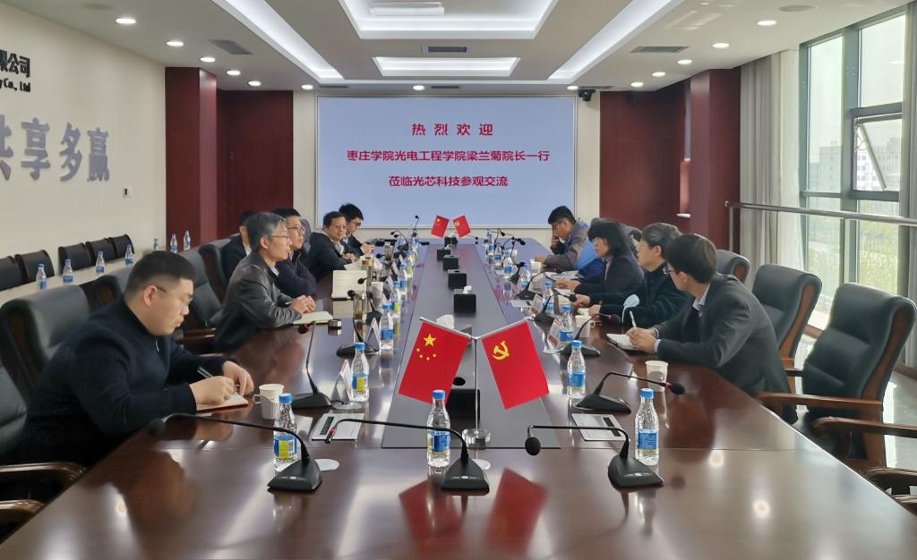梁兰菊对中建材光芯科技有限公司的热情接待表示感谢,并从办学规模、办学定位、人才培养、师资队伍及科研工作等方面对光电工程学院进行了简要介绍。她表示,中建材光芯科技有限公司作为枣庄市委市政府重点引进支持的新材料领域高科技公司,专业以生物光导识别芯片材料为主,公司发展方向与我院及高层次人才谢康教授领衔的科研团队匹配度很高,存在很多合作点,希望此次交流能进一步密切学校与企业之间的沟通联系,促进校地企合作,共同为枣庄市经济社会发展贡献积极力量。