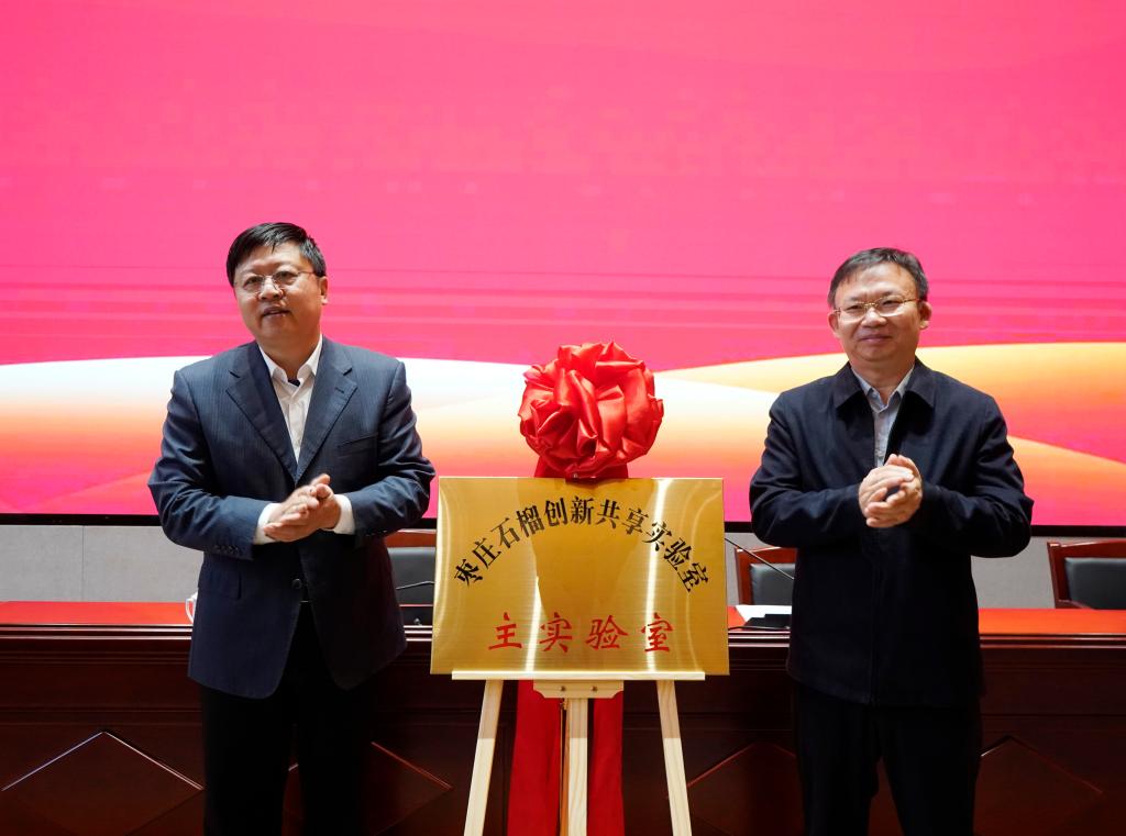 李目海与贾建军共同为“枣庄石榴创新共享实验室”揭牌。