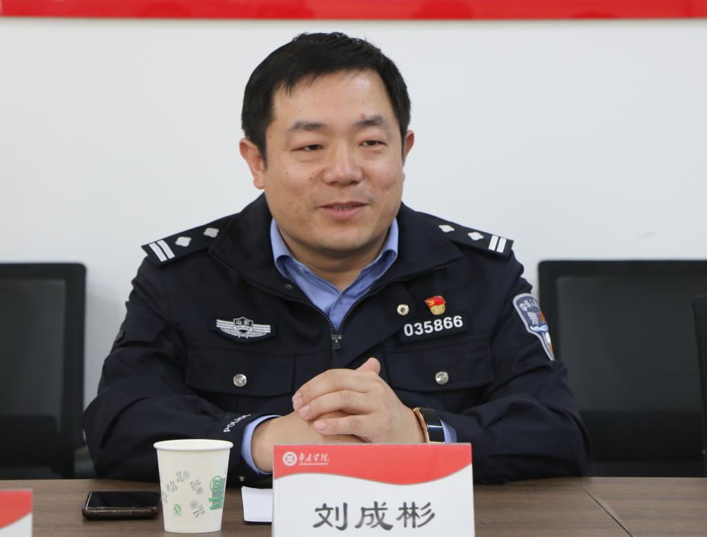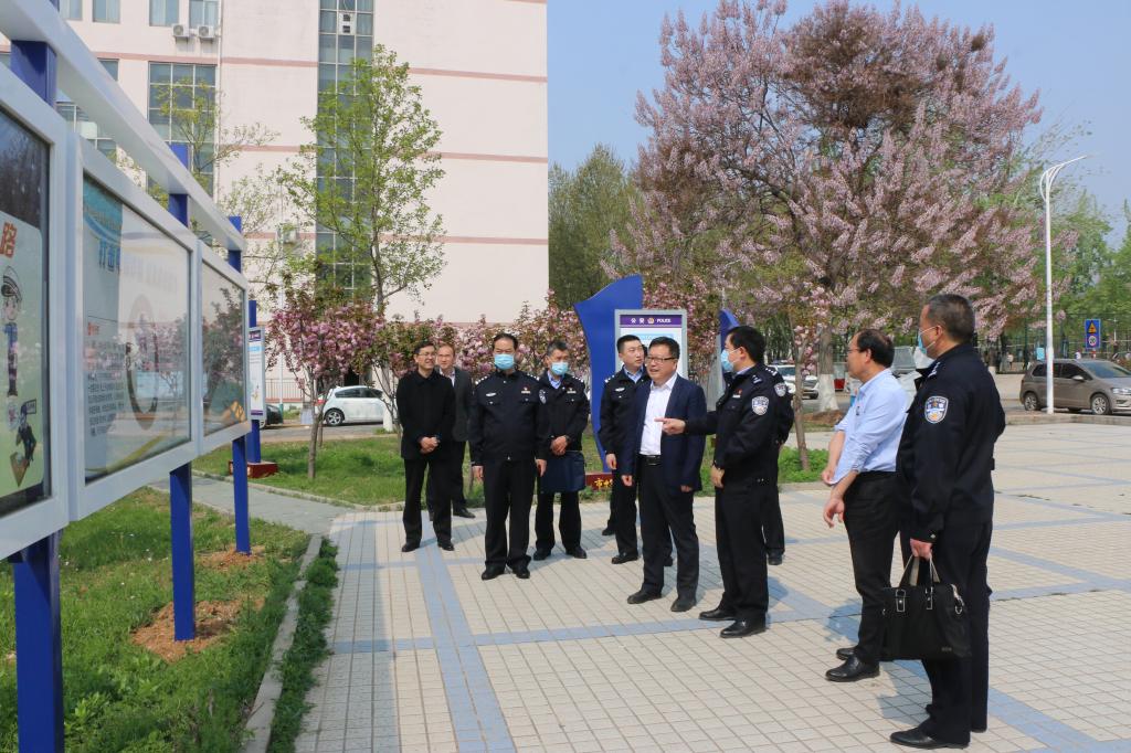 座谈交流前,刘成彬一行实地考察了我校预防诈骗安全教育宣传广场和校园警务室建设,对进一步完善安全布局、丰富宣传内容进行了调研和探讨。