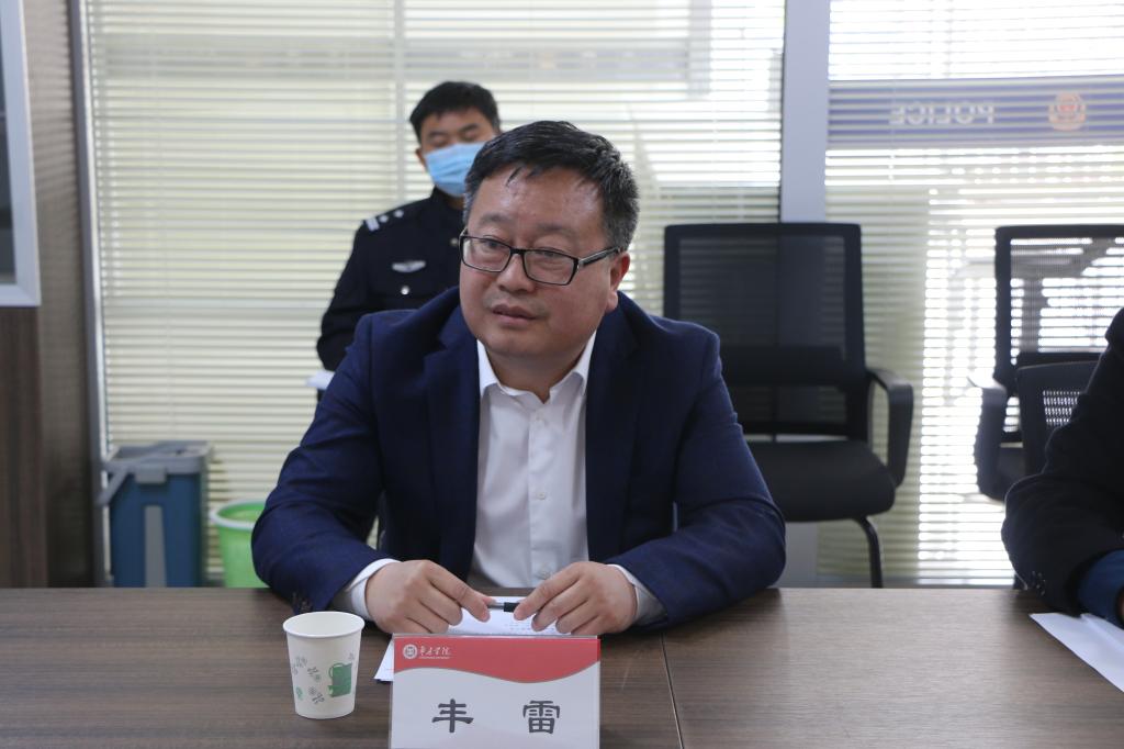 4月9日上午,枣庄市市中区公安分局党委副书记、政委刘成彬一行8人来校考察调研,校党委委员、副校长丰雷与刘成彬一行在警务室会议室举行座谈,双方就进一步加强警校联动等事宜进行了亲切交流。保卫处、学生工作处等部门负责人参加交流。