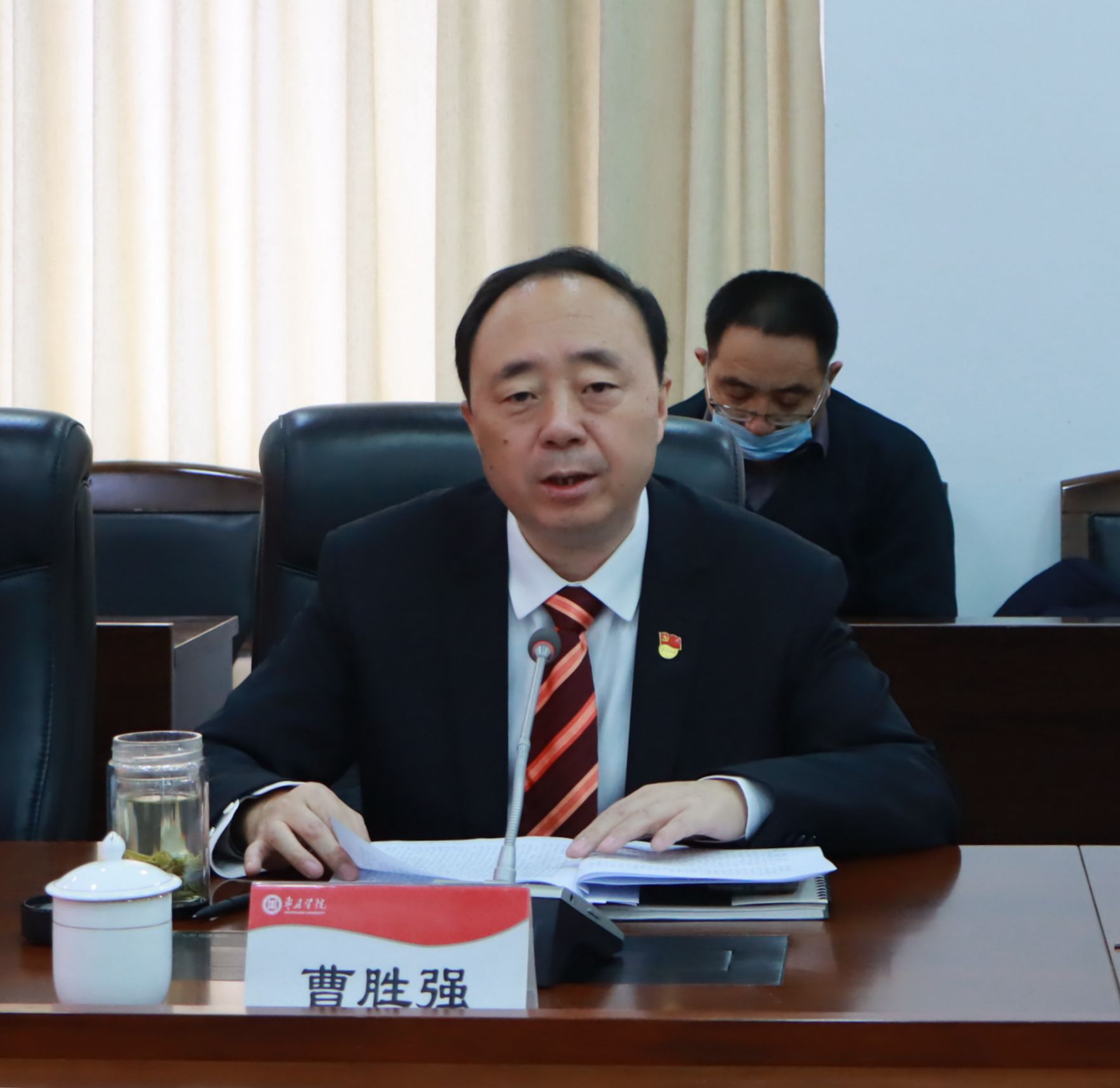 在认真听取述职后,曹胜强作点评讲话,指出各位党总支书记能够按照上级要求和学校党委部署,围绕述职评议考核的重点,实事求是地总结成绩和经验,直面问题不遮掩、不回避,谈工作思路和措施切实可行,既有工作重点、又有具体抓手。结合述职报告和党总支书记平时的工作表现,曹胜强对6位现场述职的党总支书记逐一进行点评,充分肯定了工作成效和亮点,同时也指出了存在的问题和不足。