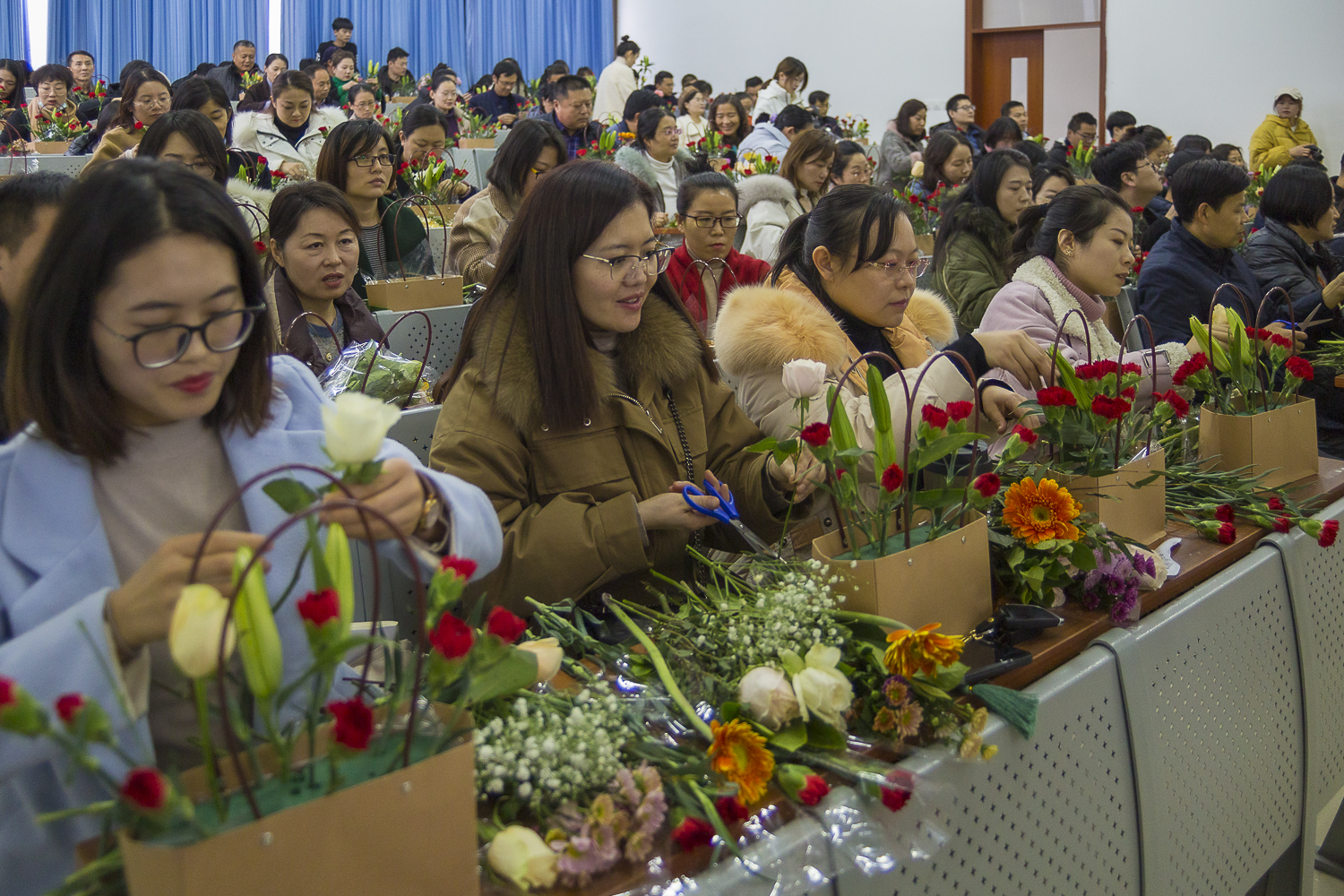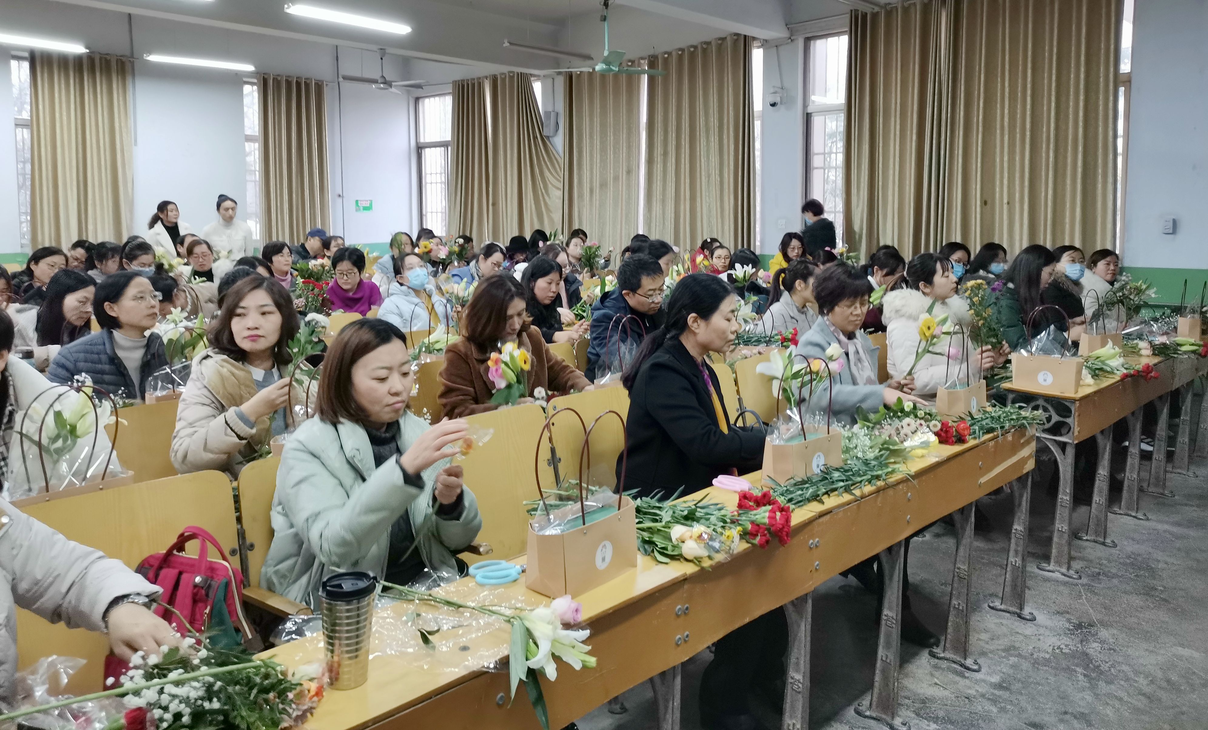 为丰富教职工精神文化生活,提高艺术修养,12月9日下午,校妇委会、校工会共同举办了第二期“花艺芬芳 美丽枣院”插花艺术讲座及实践活动。全校600余名教职工参加该活动。