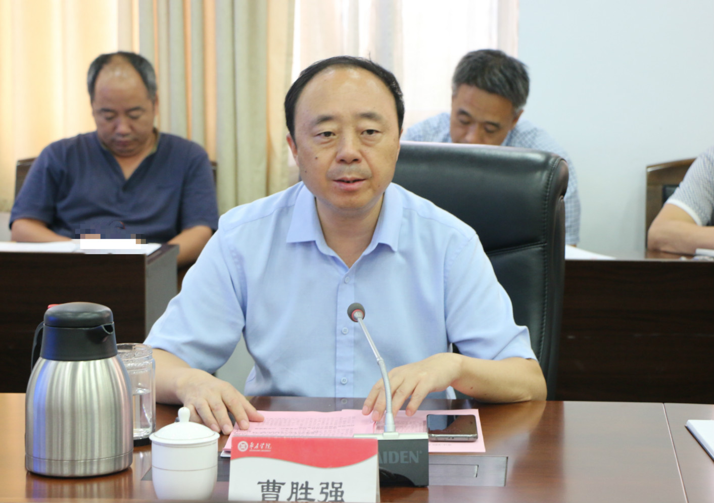 曹胜强要求,要强化责任担当,健全责任体系,完善工作机制,务必保证安全稳定工作持续向好。要进一步建立健全责任体系,按照“分工协作、归口管理、谁主管谁负责、一岗双责”的原则,严格落实主体责任、主管责任、监管责任、全员责任,做到“责任到肩、任务到人、落实到位”。要进一步建立健全风险隐患排查防控机制,完善校园安全隐患定期排查整治制度,实施安全隐患整改通知书制度,健全完善信息研判及风险评估制度,把各种不安全、不稳定因素消灭在萌芽状态。要进一步健全完善安全事件应急处置机制,继续完善应急预案,最大限度地减少和降低危害,进一步加强应急管理,形成快速反应、畅通高效的应急值守体系,进一步强化舆情监控,及时掌握舆情动态,对舆情层级、扩散速度和预期后果实施分析、跟进研判。