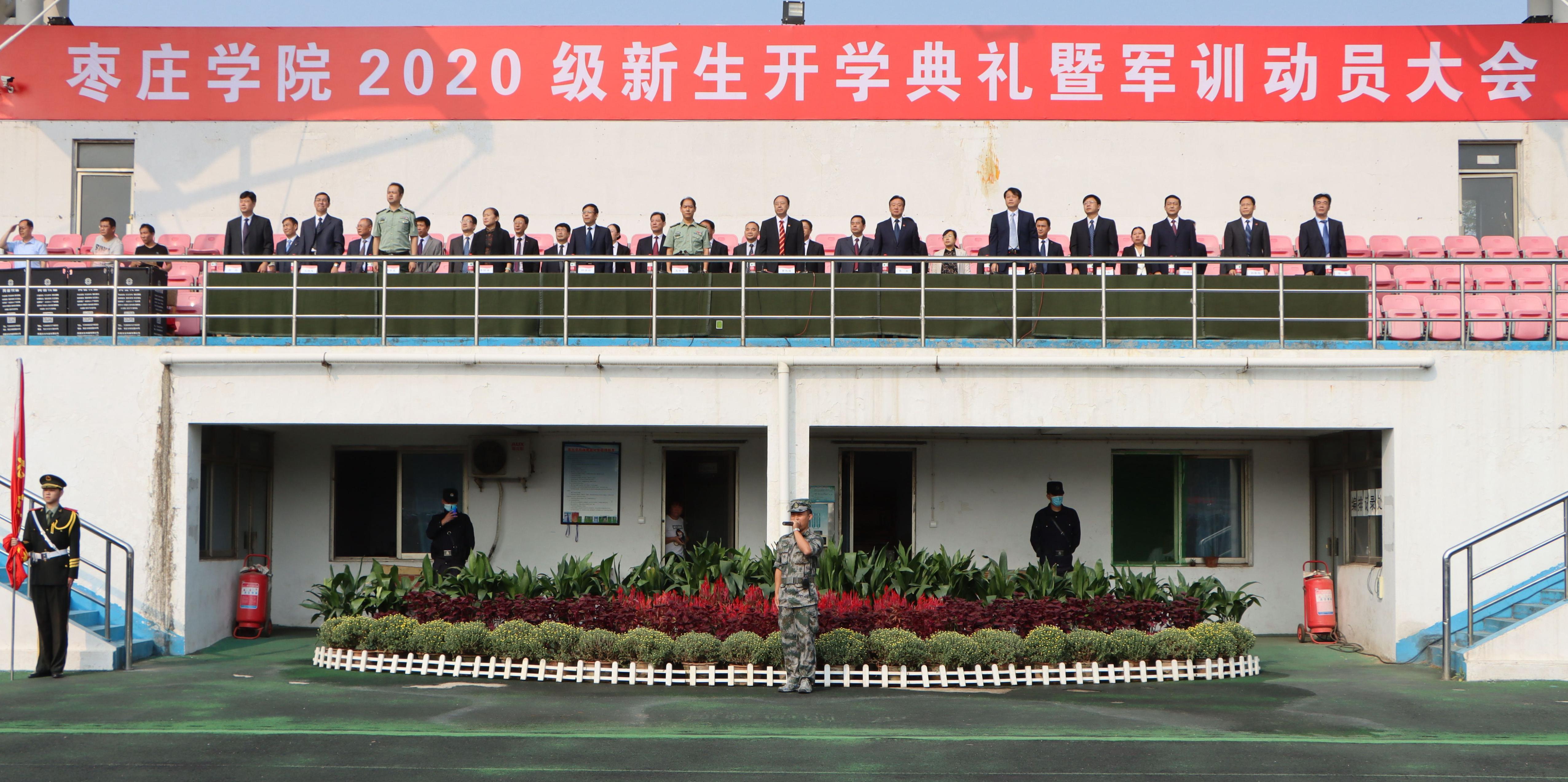 魅力枣院纳贤才,新生学子正戎装。9月24日上午,我校在西田径场隆重举行2020级新生开学典礼暨军训动员大会。校领导曹胜强、李东、曾宪明、明清河、李目海、李丽清、路绪剑,枣庄市军分区副司令王世克、枣庄市市中区人武部政委宫本星出席典礼,二级学院及相关部门负责人,辅导员、教师代表、全体新生和教官共6000余人参加典礼。典礼由校党委副书记曾宪明主持。