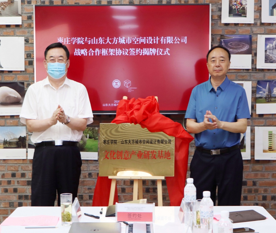 仪式上,曹胜强简要介绍了学校的办学定位、办学特色、人才培养、学科科研以及新校区建设等情况,并重点介绍了DB中国旗舰官方网站“123456”应用型人才培养模式的实践与探索。曹胜强指出,近年来,我校以建设国内知名的高水平应用型大学为指引,坚定不移推进转型发展、内涵提升,将“产教融合、协同育人”作为高素质应用型人才培养的重要路径,不断深化产教融合、校企合作方面的探索和实践,教育教学质量不断提升,得到了社会各界高度评价。党的十八大以来,习近平总书记高度重视文化产业发展工作,强调要推动文化产业高质量发展,健全现代文化产业体系和市场体系,以高质量文化供给增强人们的文化获得感、幸福感。希望我校和山东大方公司在前期友好合作的基础上,进一步加强学术与艺术交流,一起研发具有枣庄地方文化特色的文创项目,培养更多文化创意人才,全面深化产学研用一体化,促进教育链、人才链、产业链和创新链有机衔接,促进人才培养供给侧和文创产业需求侧要素全方位融合,为我校探索基于产教融合的应用型人才培养新路径积累成功经验,为枣庄市文化艺术建设做出更大贡献。