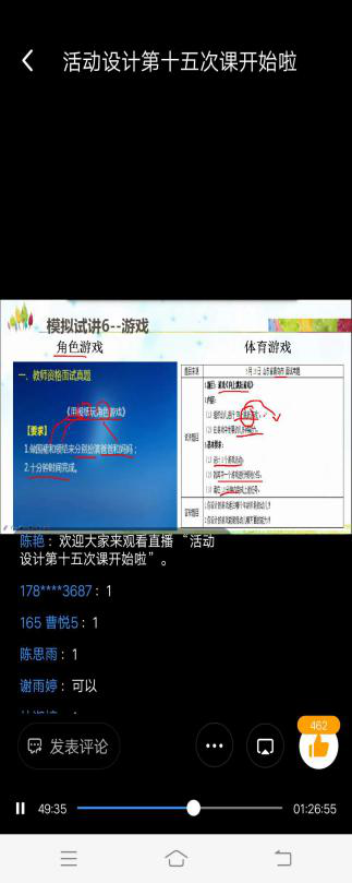 初等教育学院陈艳老师本学期承担了2016级1-5班《幼儿园教育活动设计》课程的教学任务,本课程兼有理论和实践的双重特点,一方面需要学生具备幼儿园课程的原理性实践性知识,另一方面需要学生联系其他技能性课程具备一定的教学能力和师德师范。为了使学生在理论学习的同时,能更好进行练习、实践,应用于幼儿园的实际教学,陈老师采用的线上教学形式是以直播为特征的混合式教学,选用的平台是“雨课堂+微信群+钉钉直播+班级小管家”,真正实现“优教、优学”,达到了良好的教学效果,具体可从课前、课中、课后三个环节来实施,最终实现线上教学师生互动有效,学生学习有效。具体如下: