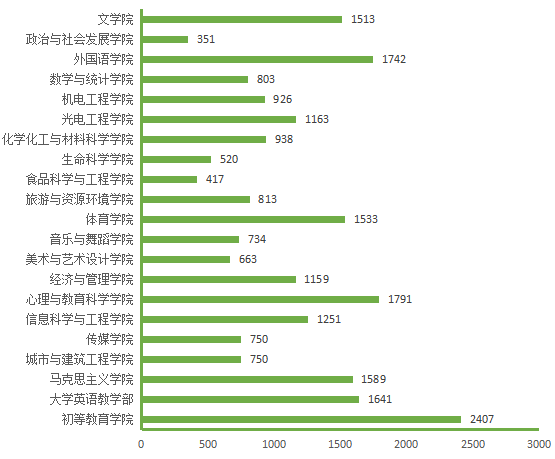 图5. 各院(部)5月20日线上授课学生数(人次)分布图