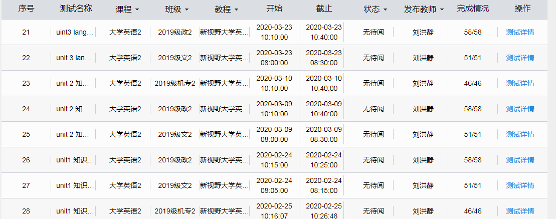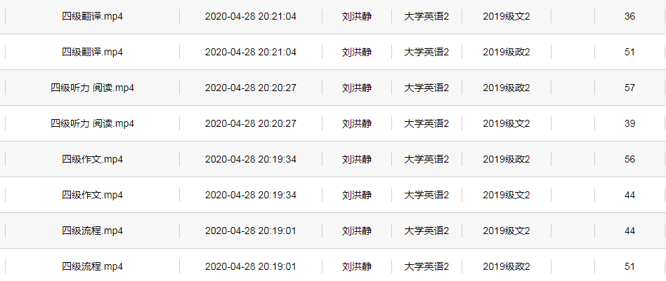 刘洪静老师承担了2019级文本科2班、政法本科2班和机电专科2班的《大学英语2》的教学任务。大学英语教学旨在继续提高学生的英语应用能力,增强跨文化交际意识和交际能力,同时发展自主学习能力,提高综合文化素养,使他们在学习、生活、社会交往和未来工作中能够有效地使用英语,满足国家、社会、学校和个人发展的需要。为全面实现大学英语2的教学目标,刘洪静老师在上课过程全面覆盖了这些目标。通过EV录屏软件进行课程内容的详细录制和讲解,通过U校园平台上传讲解资料,并在U校园和批改网发布任务、布置测试、完成作业评分,再结合微信群课堂对学生的上课过程进行指导和答疑,形成了多维度、多角度的在线上课模式。