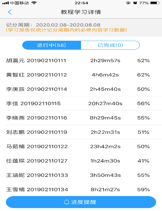每次上课前几天,刘洪静老师会利用录屏软件进行录课,在U校园发布本次课程的学习内容以及学生课前应该完成的学习任务,让学生形成良好的自学习惯,在U校园平台检测学生的学习进度,对学习进度慢的学生进行提醒和督促。上课前一晚,上传本次课所需要的PPT、讲解资料或者测试内容,为上课做好准备。
