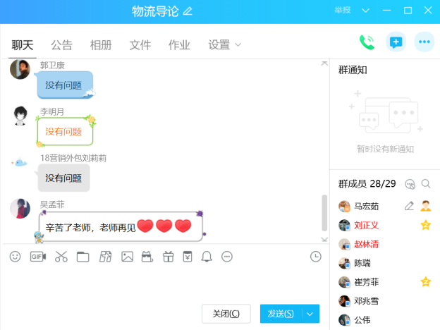 马宏茹老师每次开课前都精心备课,做大量准备工作。课前通过QQ群发布公告,要求学生提前做好准备,并进行打卡考勤。同时,将课程课件上传至微信群中,以便学生预习和复习,便于学生有针对性地把握重难点内容,提出问题,讨论问题,解决问题。