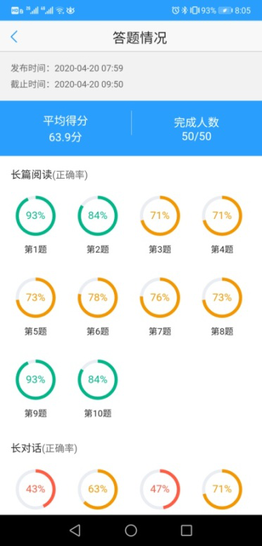 在近三个月的线上教学实践中,除了成功经验,也发现了一些问题和难点,比如重点词汇在专项测试中正确率很高,但是把它们放在以考察能力为主的四级阅读题型中进行检测,正确率很低。这说明学生对语言的学习还是浅尝辄止、浮于表面,没有真正内化于心、熟练掌握。