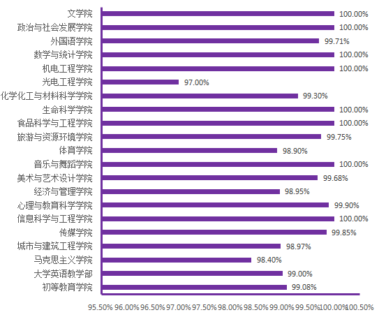 图6. 各院(部)5月13日线上学生上课率分布图