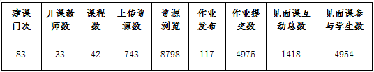 本周线上教学课程1093门、3095门次;参与授课教师授课人次3095人,涉及教学班周合计2243个,学生学习人次数163265;累计上线学习学生人次数占累计应上线学习人次数比例为99.22%。