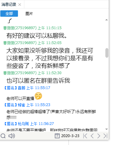 3.第二小节课,提交课堂作业到微信小打卡,并在QQ群里提问、讨论、答疑。教师发布的讲课视频里会有1-2个随堂作业,方便课上快速解答,提交到微信小打卡。之后,便是QQ群里讨论答疑,学生们对于使用文字或语音讨论很是积极踊跃,几乎不给老师回答的机会,质量也很高。