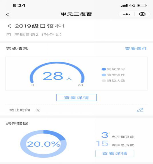 《基础日语2》每周8学时,共计128学时。每周开课前,在雨课堂发布配有教师语音讲解的课件,作为辅助的学习资源。