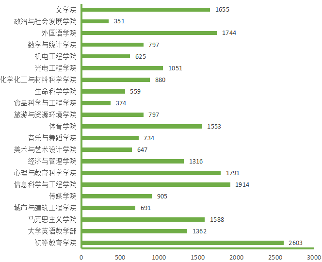 图5. 各院(部)3月18日线上授课学生数(人次)分布图