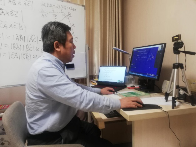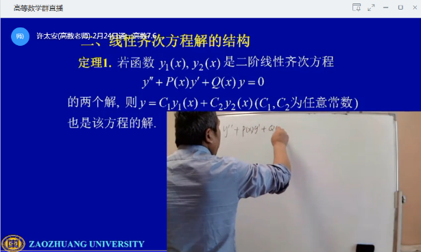 《高等数学》是理工科基础理论课,定义定理以及公式推导多,内容比较枯燥,采用线上教学难度系数大。如果一味将知识讲解用于PPT播放,高等数学很难达到效果。如果让学生像在课堂一样跟随老师的思维进行推理,板书是重要的一环。为此,许太安老师专门购置了一块白板,上课时定义、定理的推导也与教室内上课一样进行推导及板演,目的在于准确表达出知识间的逻辑关系,在掌握基本知识的前提下,突出章节的重点和难点,将较为枯燥的理论知识在网络直播课堂上与同学进行互动。