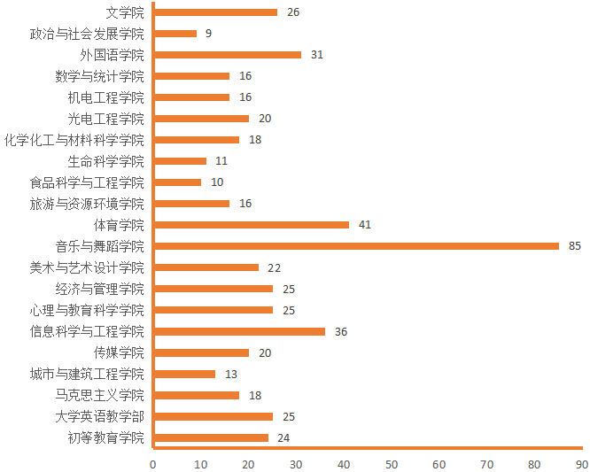 图4. 各院(部)3月18日线上授课教师数(人次)分布图