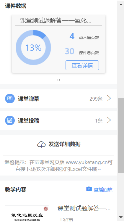 仍然沿用雨课堂课前推送、课中直播、课后反馈的的方式,有数据有回放,更有利于学生随时随处学习。