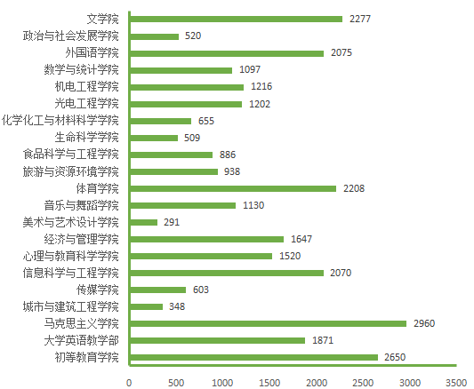 图5. 各院(部)3月6日线上授课学生数(人次)分布图