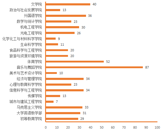 图4. 各院(部)3月6日线上授课教师数(人次)分布图