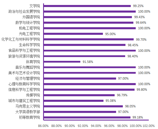 图6. 各院(部)3月6日线上学生上课率分布图