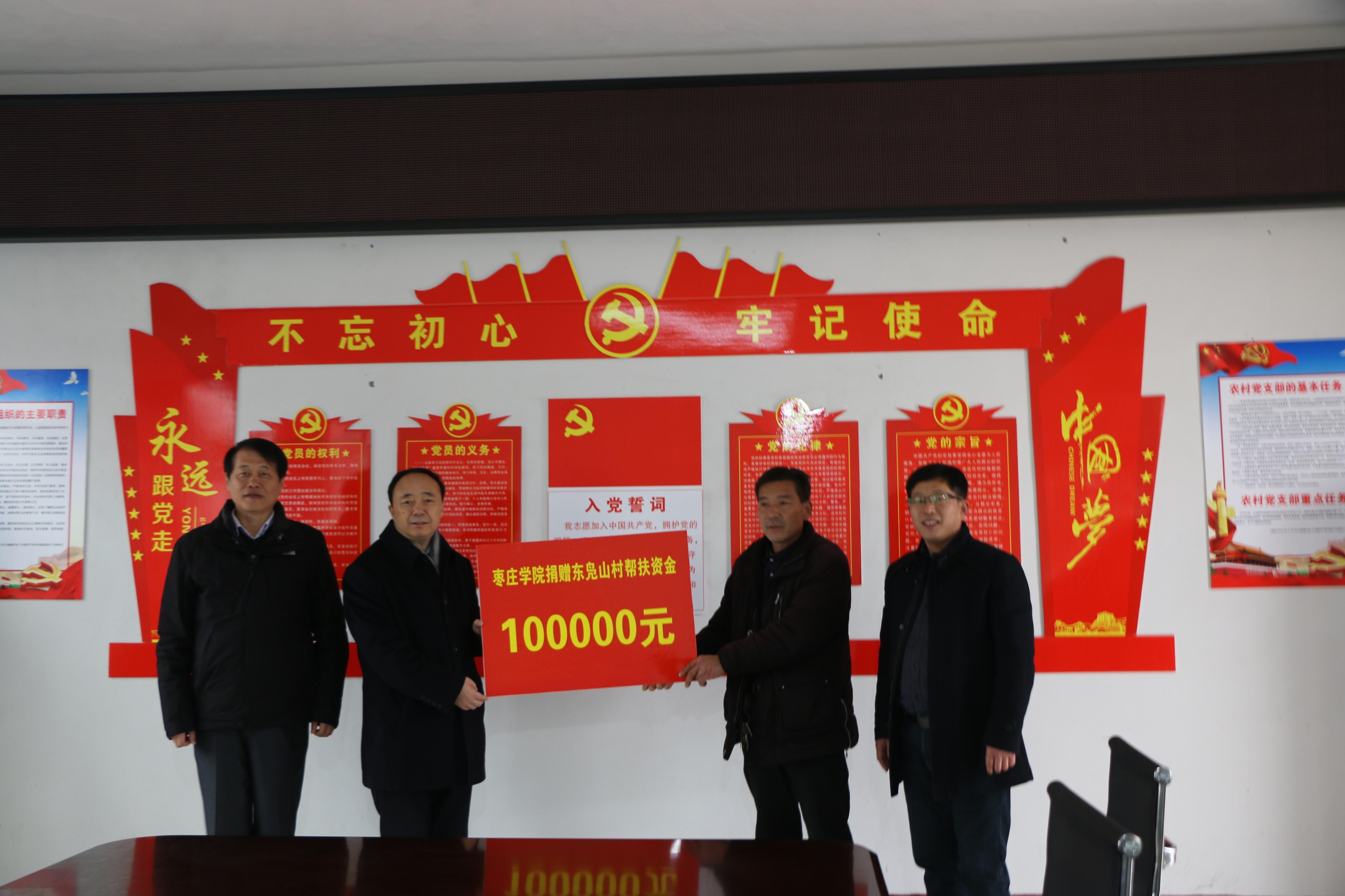 1月11日下午,校党委书记曹胜强、副书记曾宪明在学校组织部、办公室负责人的陪同下,深入我校“第一书记”帮扶的山亭区北庄镇、凫城镇考察“第一书记”工作并赠送帮扶资金。山亭区委副书记邹安德及镇党委主要负责人陪同。