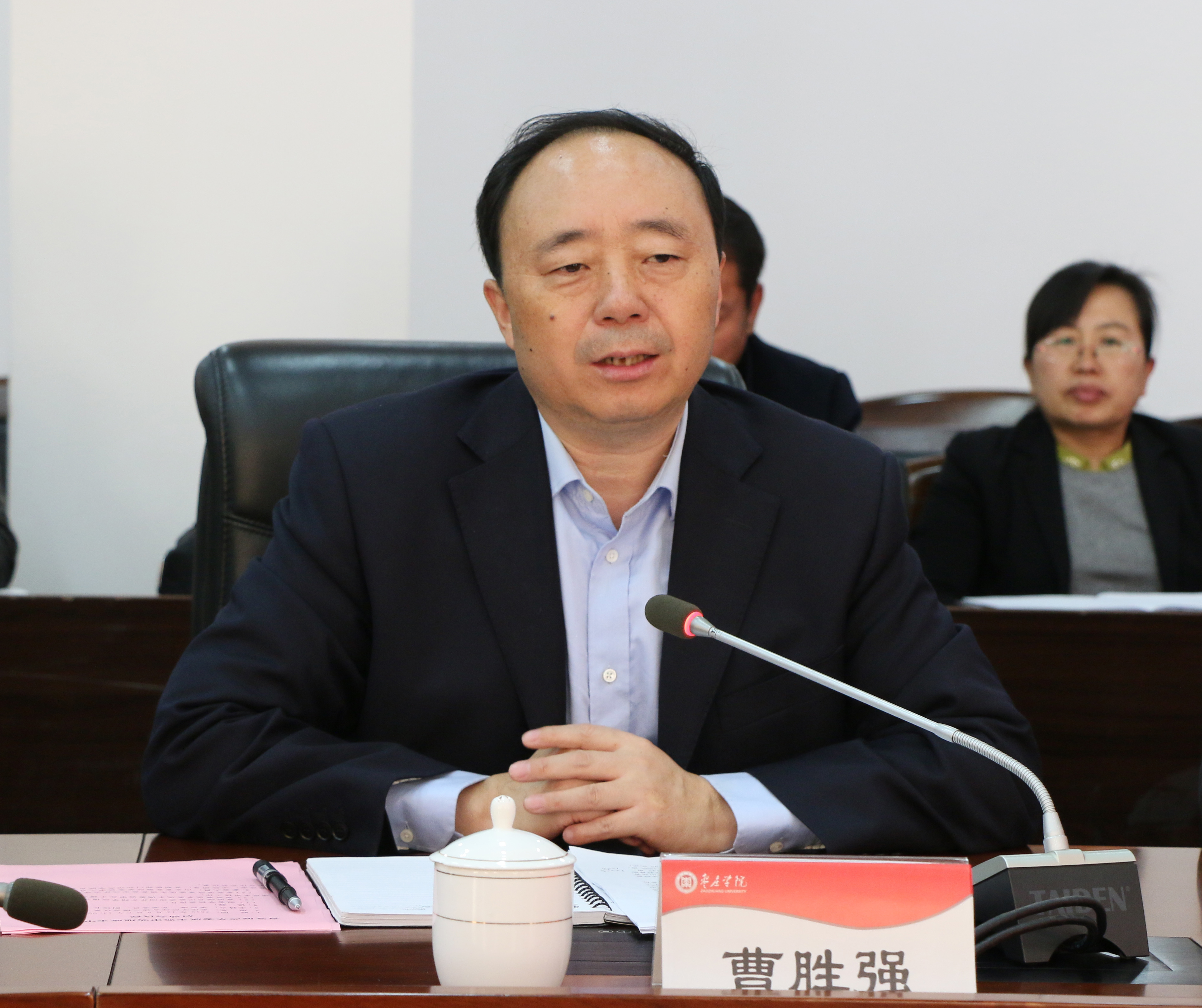会上,集体观看学校宣传片后,曹胜强代表学校对徐宝莲一行表示热烈欢迎。曹胜强简要介绍了学校的办学历史、师资队伍、教学科研以及国际交流与合作等基本情况,指出近年来学校围绕立德树人根本任务,坚持为党育人、为国育才,以党的政治建设为统领,大力推动学校各项事业稳步发展,成果丰硕。结合学校发展情况,曹胜强重点介绍了学校四个方面的特色建设情况:一是聚焦立德树人,深化产教融合、校企合作;二是加强人才引进与培养,教学科研成果显著;三是积极开展援疆实习支教,促进民族团结,增强社会效益;四是加强条件保障,促进学校高质量发展。
