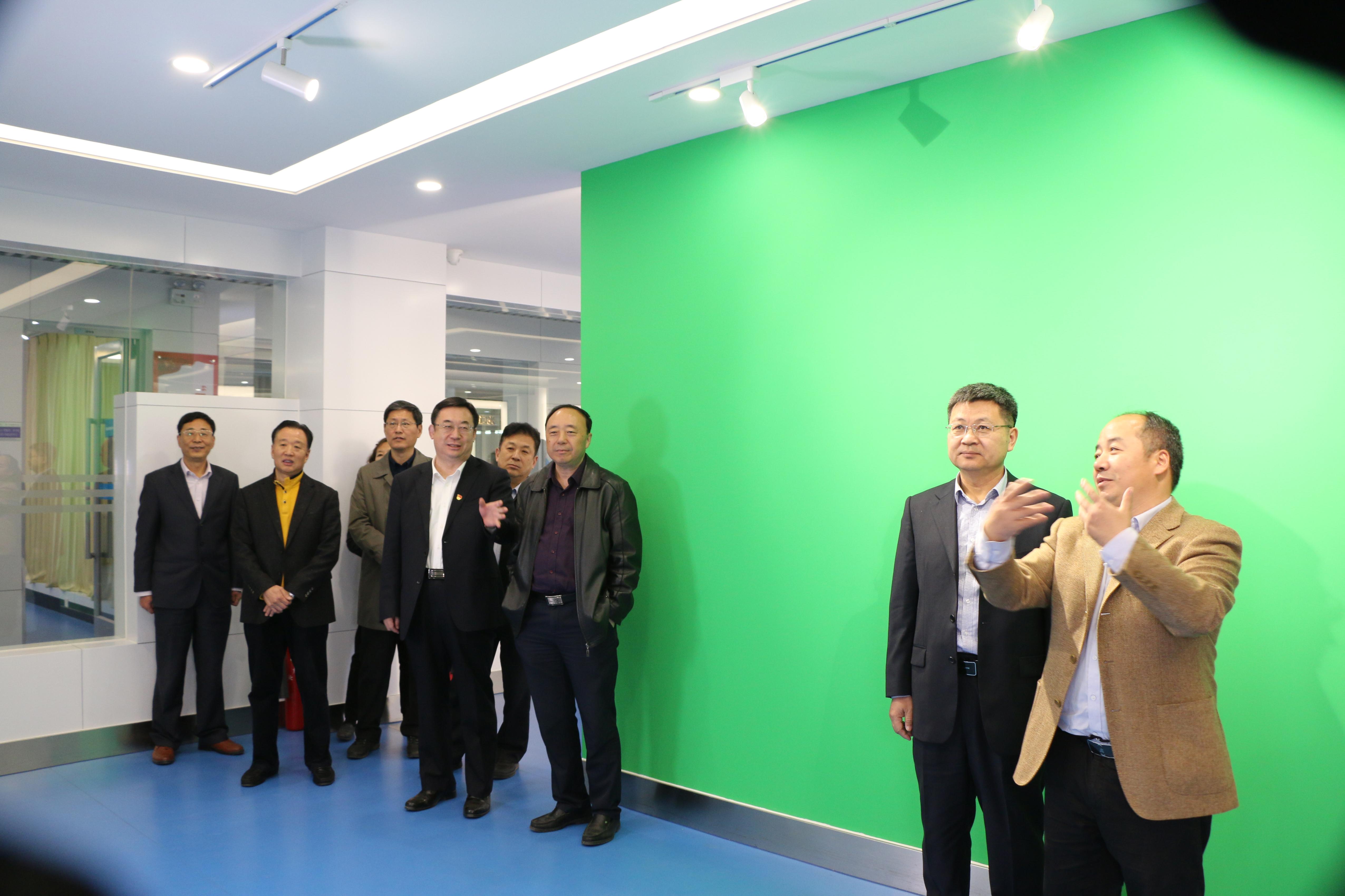 在曹胜强、李东、李爱杰陪同下,张伟一行参观了我校计算机实验教学中心。我校信息科学与工程学院相关负责人对实验教学中心的构成、运行模式、教学特色等事宜进行了详细介绍。