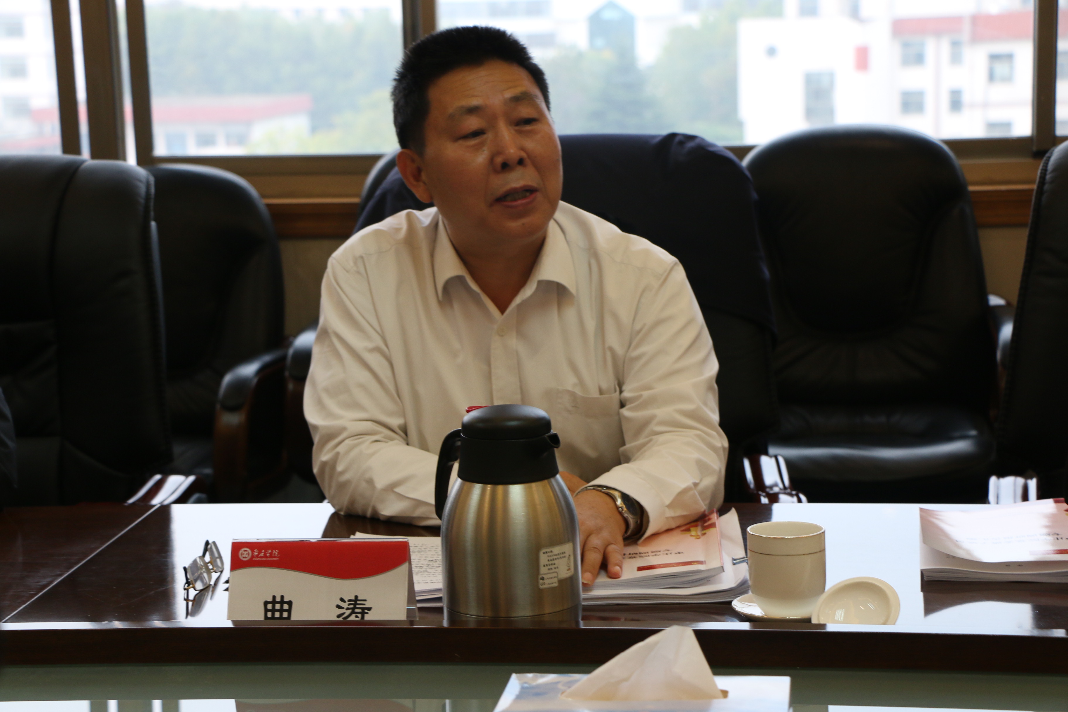 按照省委部署和学校“不忘初心、牢记使命”主题教育工作安排,10月23日下午,我校在综合楼八楼会议室召开校领导班子主题教育调研成果交流会。省委第二巡回指导组组长曲涛到会指导并讲话, 校领导曹胜强、李东、曾宪明、李目海、韩素玲、李丽清出席会议。巡回指导组部分成员, 相关部门和单位负责人参加会议,会议由校党委书记曹胜强主持。