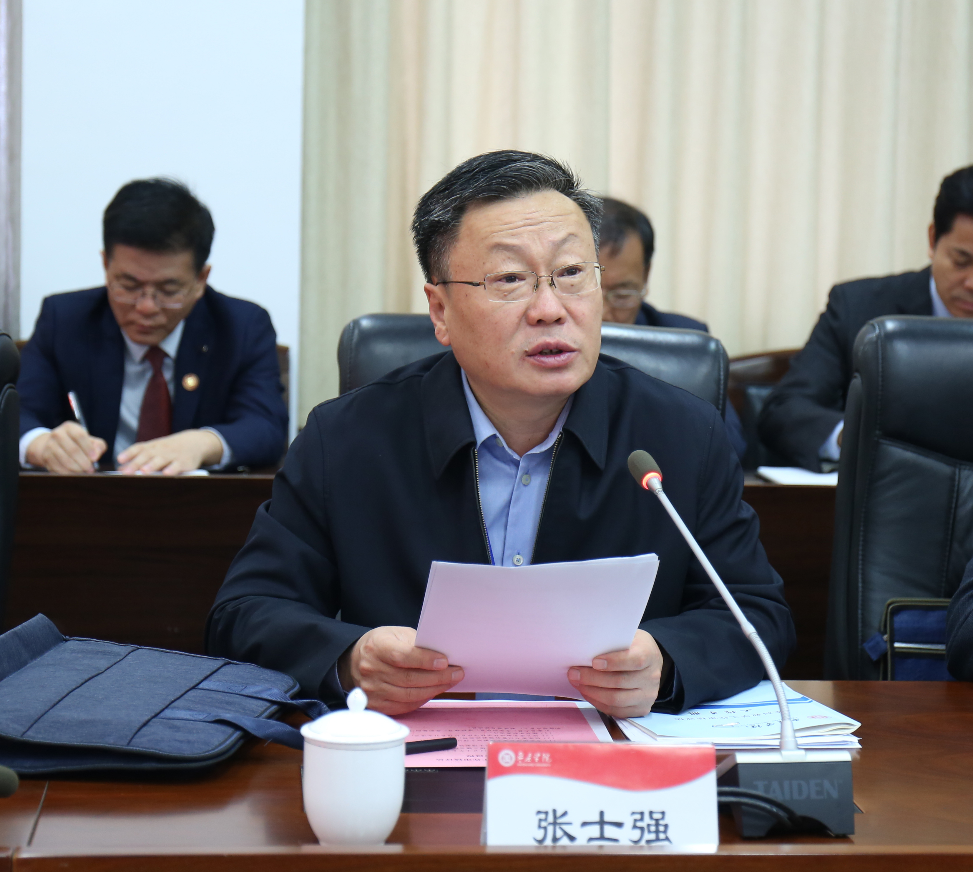校党委书记曹胜强致欢迎辞,代表学校对专家组莅临我校全面诊断、检阅和指导本科教学工作表示热烈欢迎和衷心感谢。曹胜强指出,此次本科教学工作审核评估恰逢全党开展第二批“不忘初心、牢记使命”主题教育,对于学校坚持立德树人根本任务,全面落实党的教育方针,意义深远。