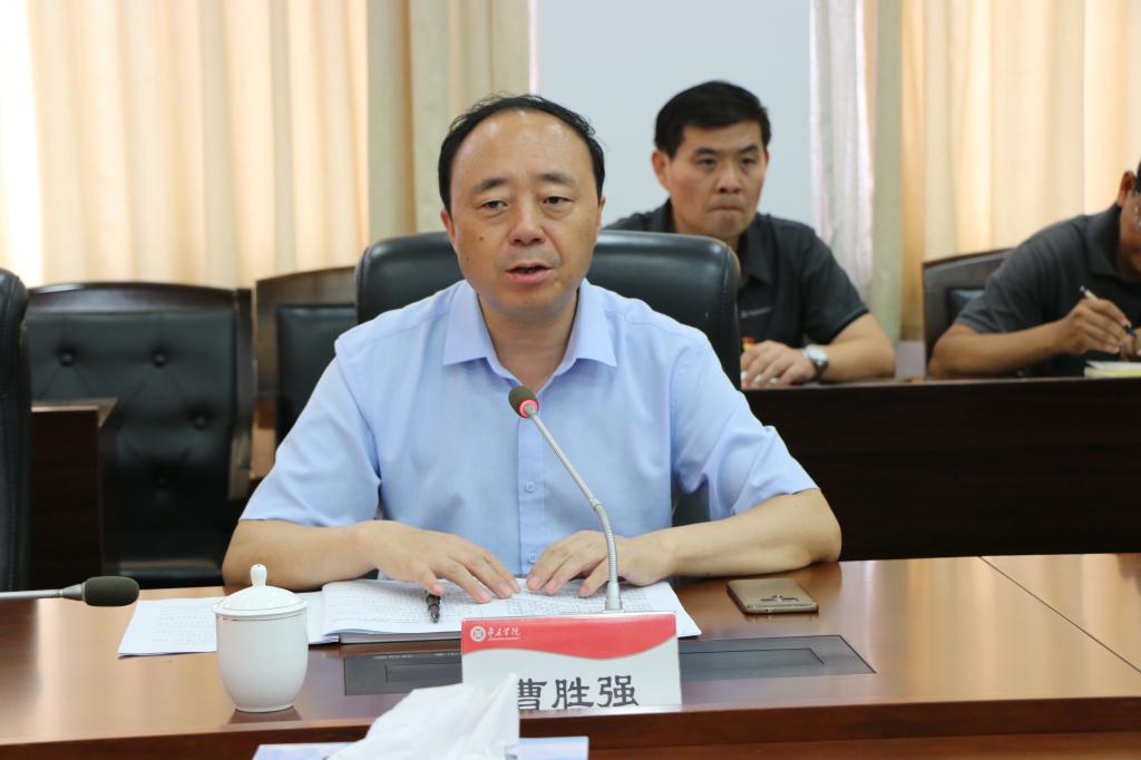 9月12日,学校在综合楼三楼会议室召开“不忘初心、牢记使命”主题教育领导小组办公室成员思想动员暨业务培训会,校主题教育领导小组办公室及巡回指导组全体同志参加会议。校主题教育领导小组组长、党委书记曹胜强作动员讲话,会议由校主题教育领导小组副组长、领导小组办公室主任、党委副书记曾宪明主持。