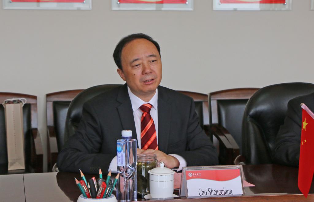 校党委书记曹胜强、副校长明清河在综合楼八楼会议室会见来宾,国际合作与交流处、人事处、科技处、教务处、机电工程学院、光电工程学院、化学化工与材料科学学院、信息科学与工程学院负责人参与会见并座谈。