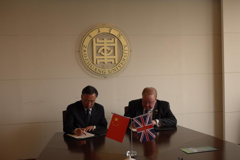 李东代表我校与切斯特大学签署两校合作备忘录,并向Tim Wheeler和切斯特大学商务研究学院院长Phill Harris 颁发我校客座教授聘书。
