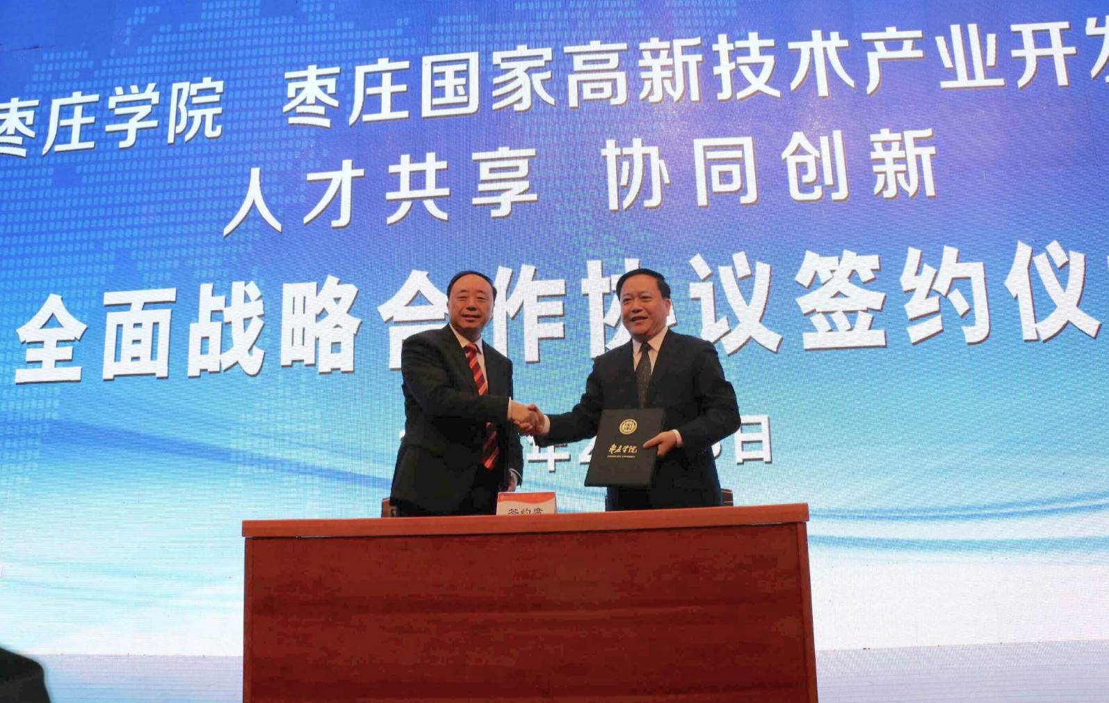 开幕式现场,曹胜强与王广部分别代表DB中国旗舰官方网站与枣庄国家高新技术产业开发区签订《人才共享、协同创新合作协议》;明清河代表DB中国旗舰官方网站与引进人才代表签约。
